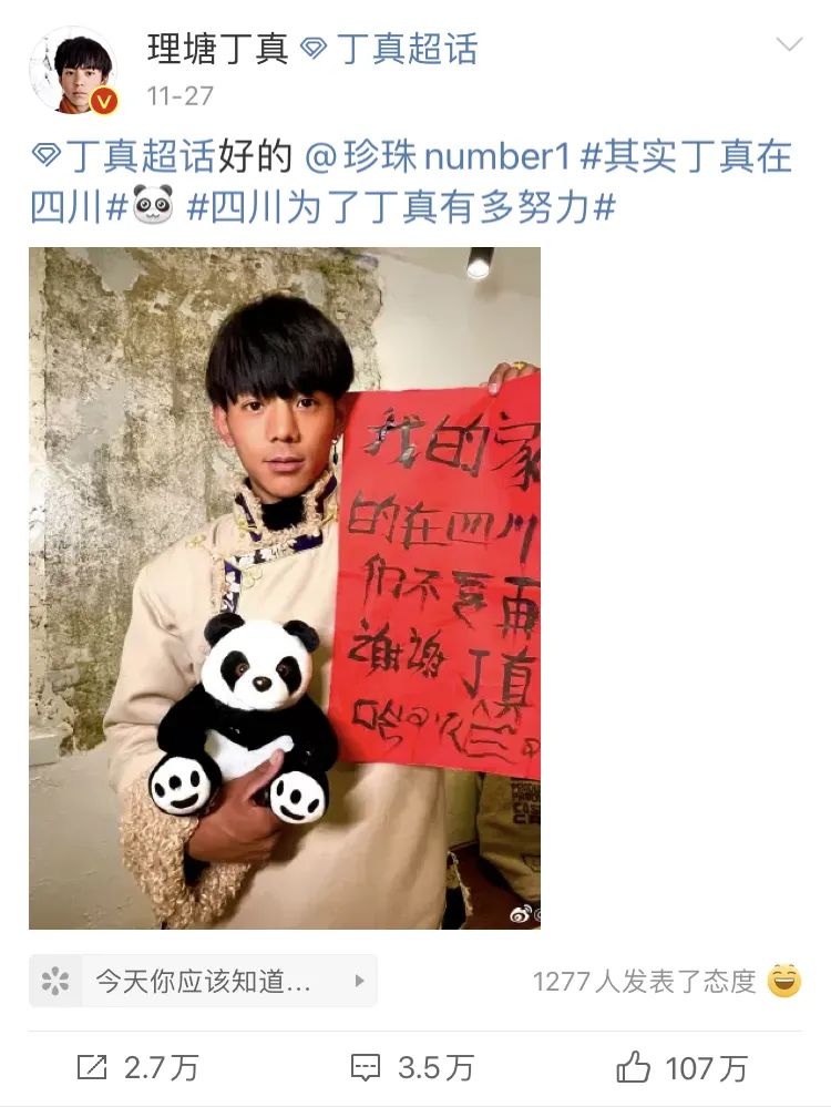 对此,丁真不得不在自己的微博上连发两条举着红色宣传纸的微博,上面用黑色毛笔字生疏地写着:“家在四川”,以及“我的家真的在四川,你们不要再P图了”。