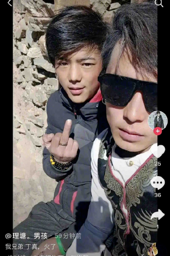 比如,丁真走红后一些旧照被曝光,其中一张照片,丁真竖着中指,留着“杀马特”发型,眼神成熟。有人对此表示无法接受、大呼失望:“丁真不要学他们啊,这样姐姐不喜欢你了。”