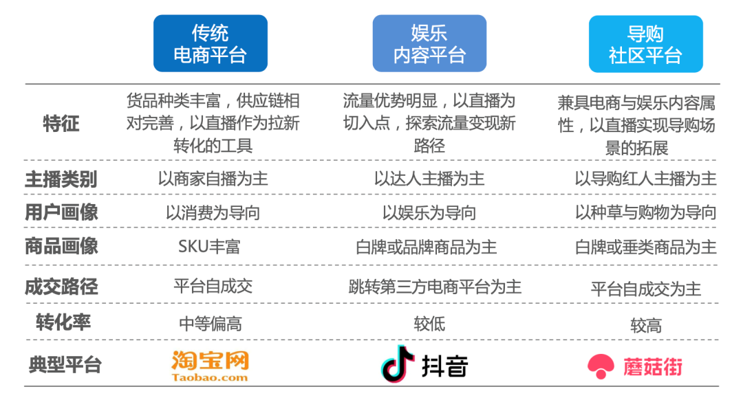 导购型直播:互动体验好,粉丝粘性强,转化率高,商品丰富度也够,但流量不足。