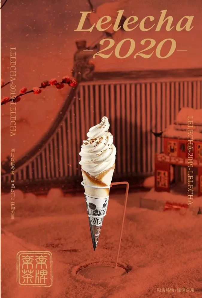 故宫是这几年文创行业最红的IP之一,乐乐茶与故宫的联名活动推出时间恰逢新年,因此海报设计上使用了喜庆的中国红来烘托气氛,又将大家熟悉的故宫祥云图案用新的笔触进行处理,削弱原本威严权威的形象,多了几分生动与俏皮,好不热闹。