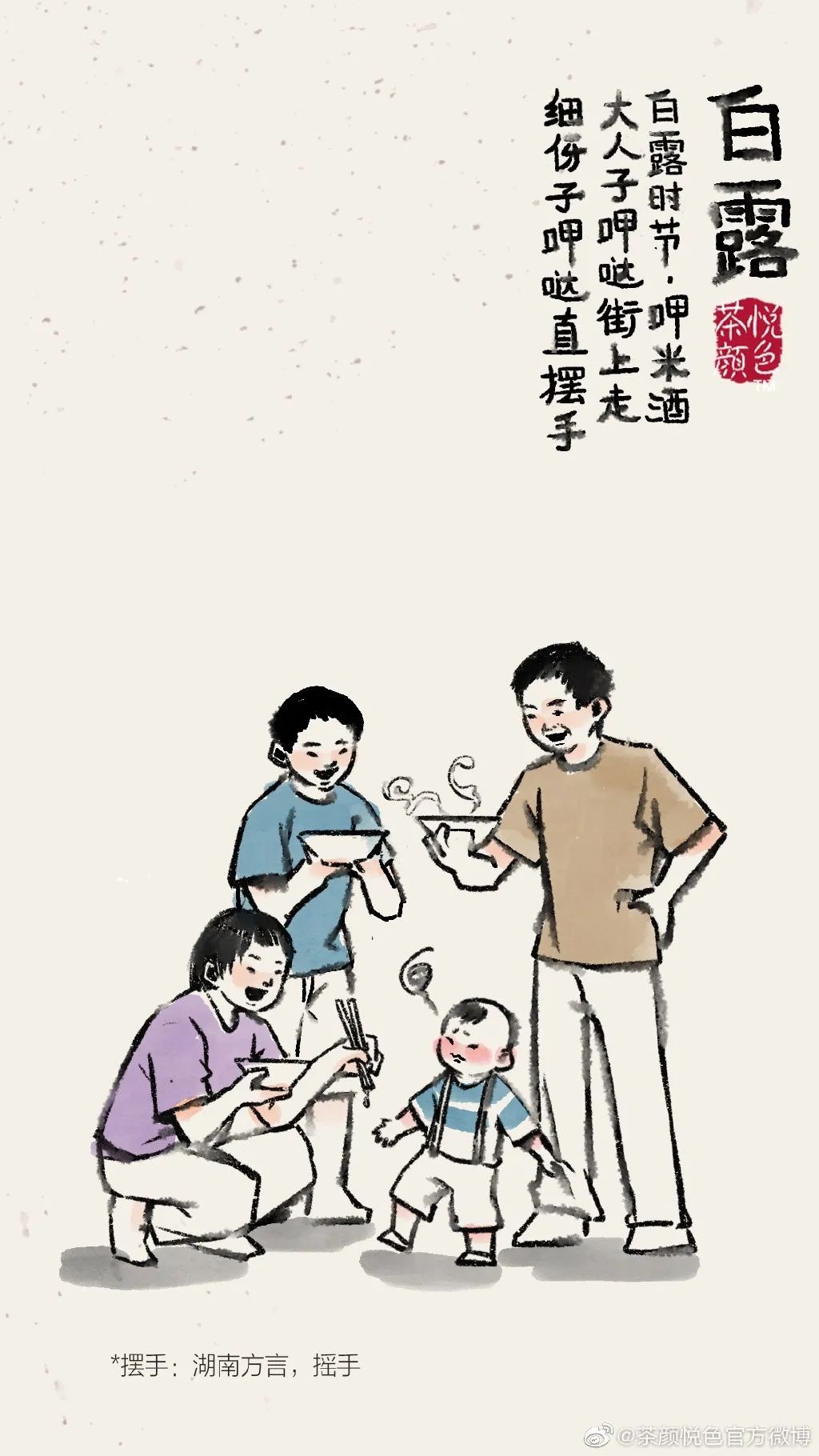 第一眼看到茶颜悦色的节气海报时,脑海中跳出的是小时候看丰子恺漫画时的感觉。寥寥几笔却充满着童趣。又有一点像以前家里挂的日历画。即使不知道品牌名称,这组自成风格的节气海报也能从一众网红海报中脱颖而出,夺人眼球。