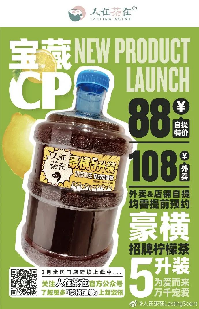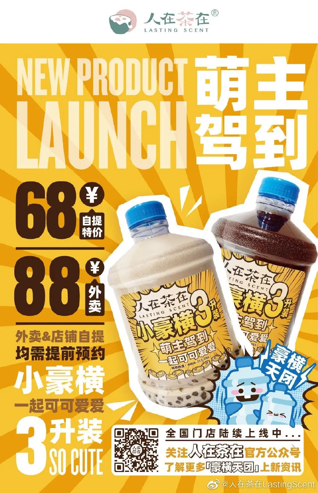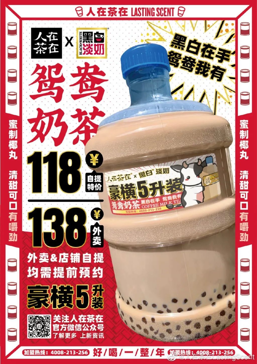 有史以来容量最大的奶茶,海报自然也得配得上这“最大”的排场。占据画面大部分的“奶茶桶”一上来就牢牢锁住了视线。也许有时候简单粗暴也不一定就是贬义词,至少它能让你在最短时间内牢牢记住。