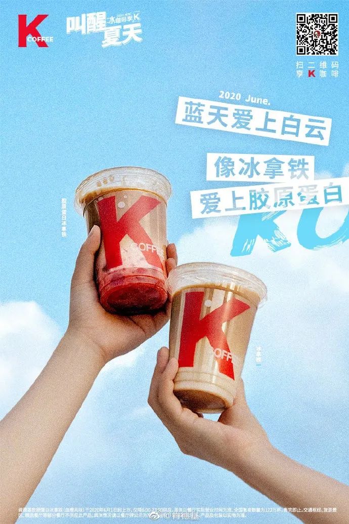 来自肯德基6月冰咖啡季,推出新品胶原蛋白冰拿铁时的系列海报。海报主题为做最“Kool”的“Koffee”。作为一组夏日海报,整体色彩清新,画面主人公青春洋溢,透心凉的冰蓝色描绘阳光充足的夏天里的丝丝冰凉,叫醒夏天,元气十足。