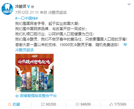 回应微博发布后,冷酸灵官博转评赞过万,百度指数显示品牌的搜索指数创下了近半年来的新高,仅凭一条回应微博登上热搜。