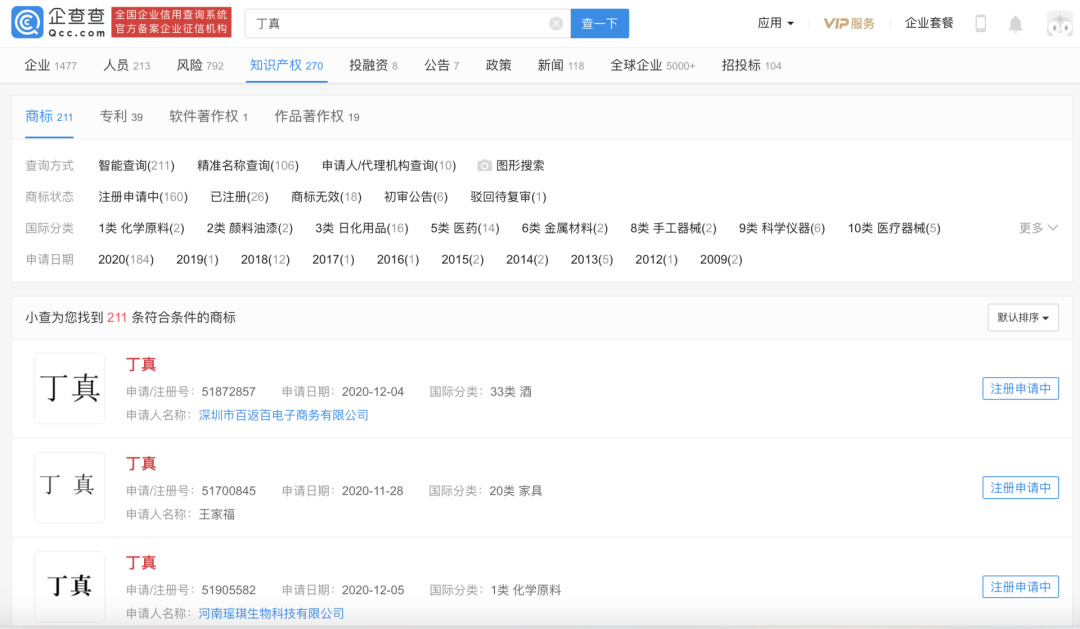 前段时间理塘小伙丁真火遍全网,多家与之无关的个人和公司 ,提交了整整 270 件 “丁真”商标注册申请。