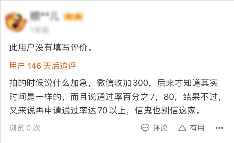 更有商家,假借加急办理的噱头,私下添加买家微信额外收费,但实际的效果却并没有因为收费多而得到提升。