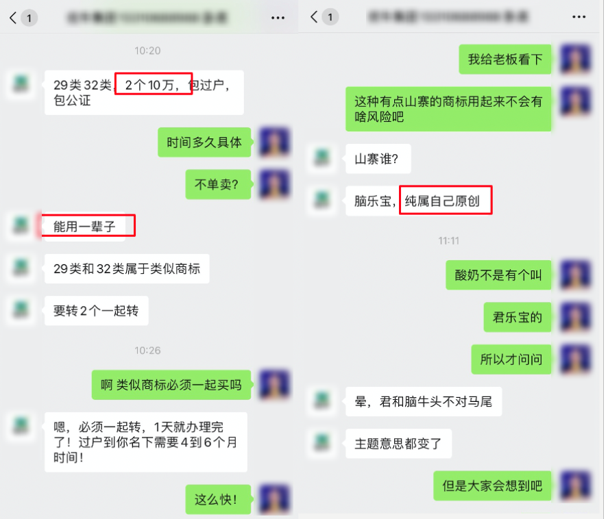 当我假装买家去问商标价格,结果又被告知: 2 个 10W ,这涨价涨得,称得上是“神速”。