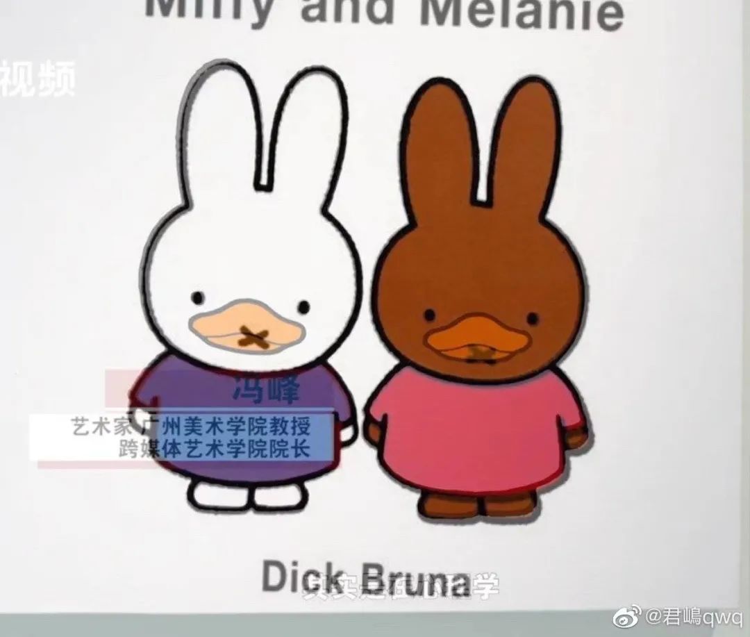 广美教授冯锋 因其作品 “鸭兔元旦” 酷似经典形象 “米菲兔” 而被网友质疑“抄袭”。