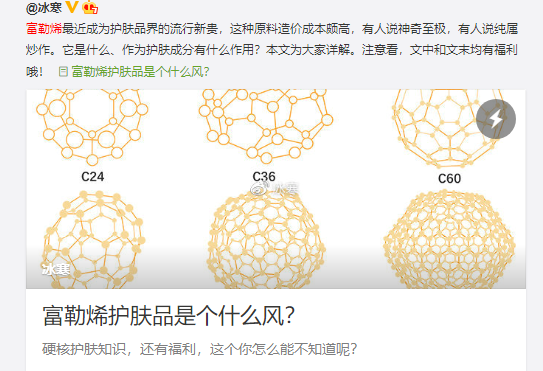 Haa还与一些腰部KOL合作,基于自身产品差异化特点,突出产品优势。@冰寒 是一位在护肤领域具有一定知名度的硬核博主,主打以成分解析为主的护肤品评测,在Haa推出富勒烯精华新品之际,@冰寒 通过一篇专业长文向用户普及了富勒烯成分的构成,并表示其区别于市场的优势特点,博文扩散期内,他通过转发抽奖活动,让Haa品牌知名度进一步提升。
