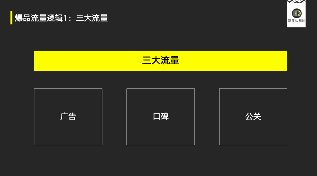 我们认为,能够促进流量与产品进行反应的媒介,主要分为3种:广告、口碑和公关。