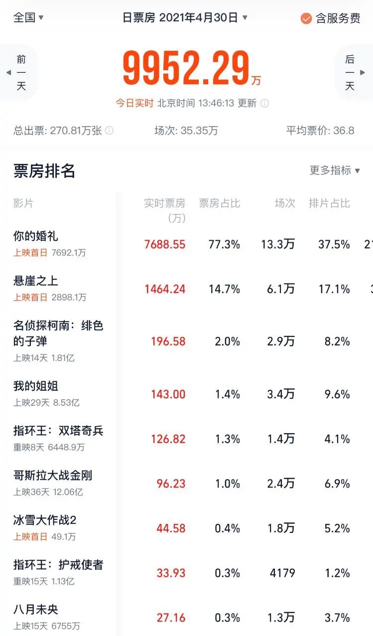 2021年五一档票房可谓是“神仙打架”