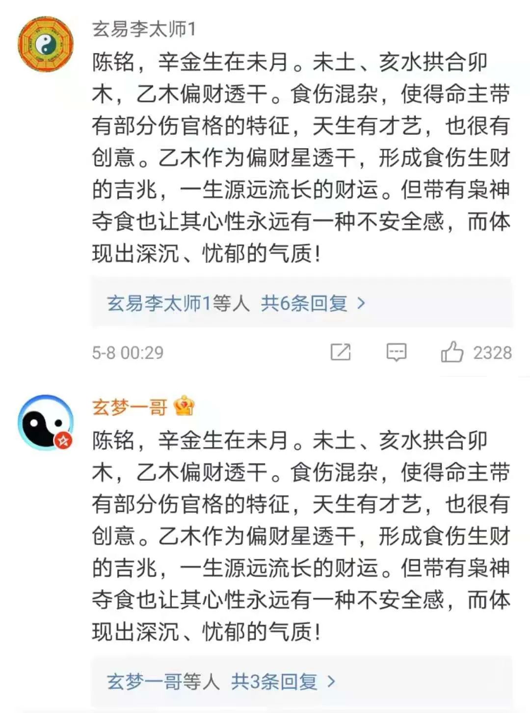 每一条热点下面,各路大佬纷纷献宝,仿佛思前想后一个月,才做了违背祖宗的决定,主动给明星算命。感天动地,感人肺腑,感人至深,感动之余,这份敬业精神让我迷失了自己。