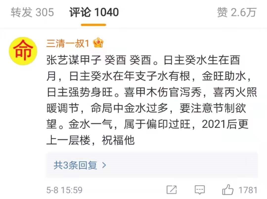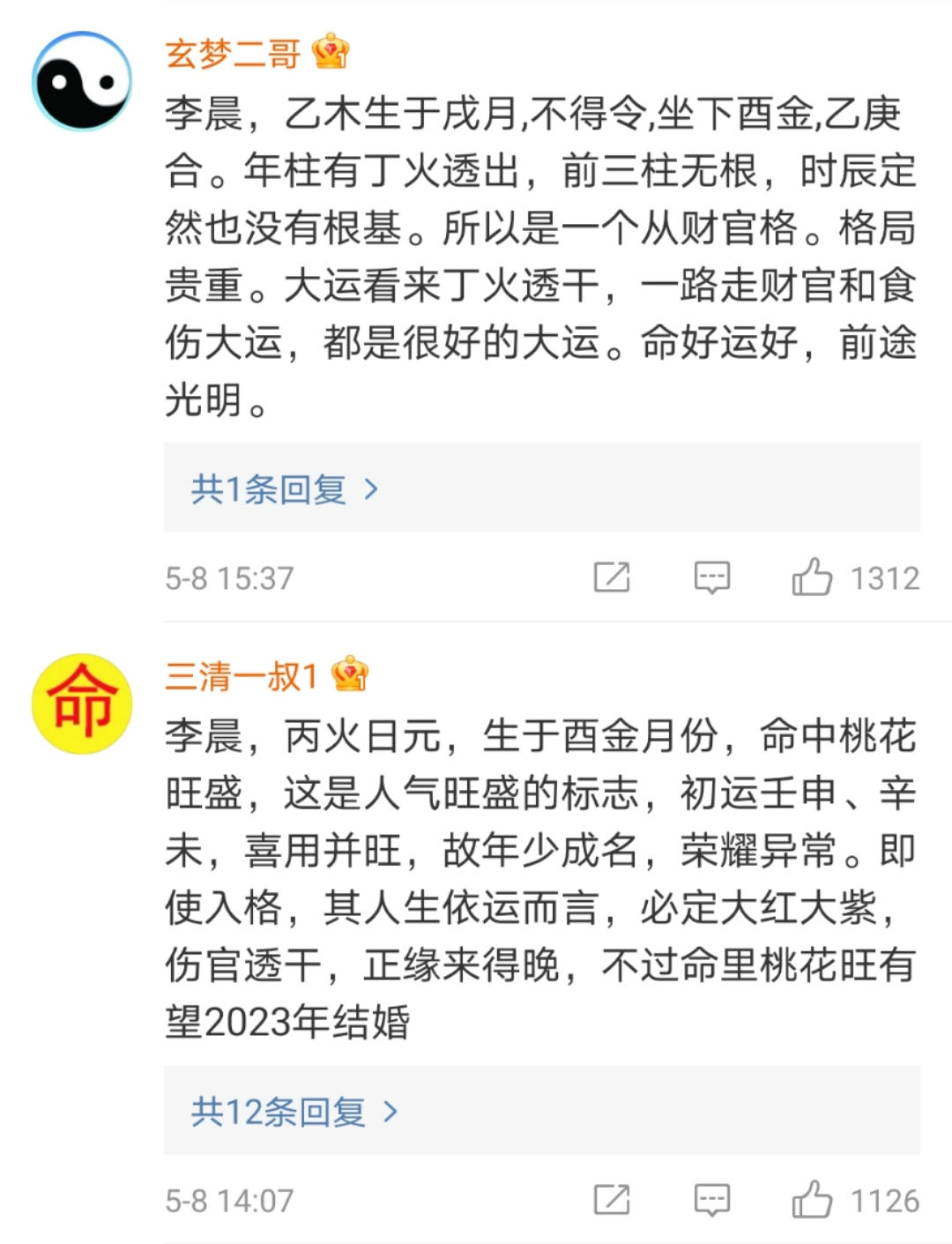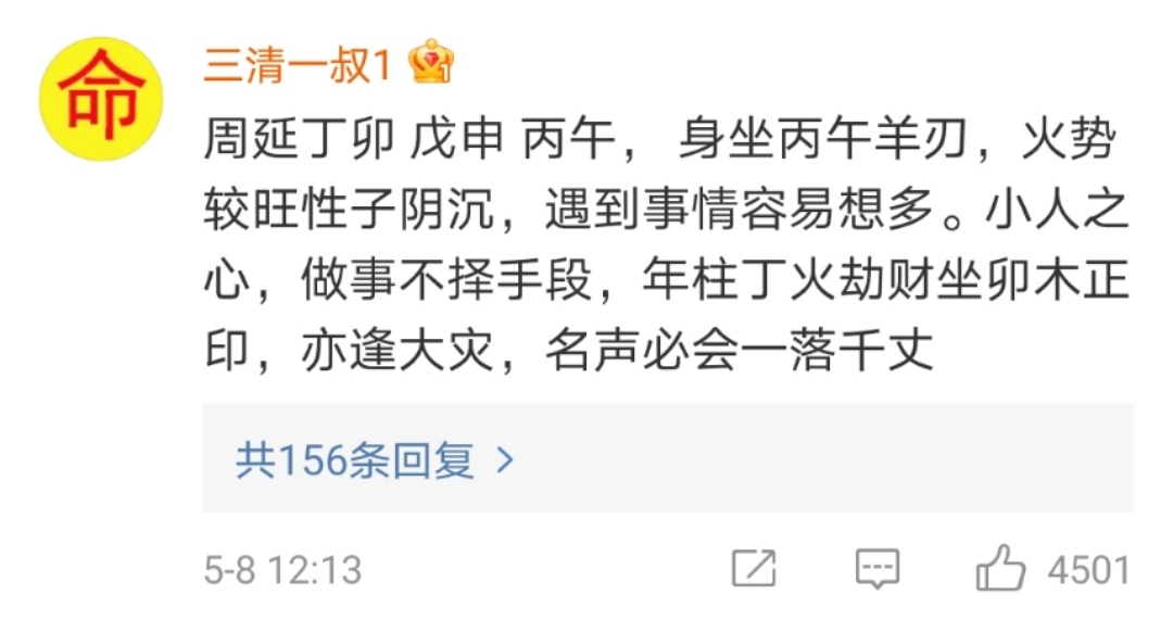 过去有汪峰老师用他的一己之力,在年初绽放了3朵怒放的生命。现有算命老师奋追热点,力图把明星们的命格五行,未来趋势,告诉所有来啃瓜的人。