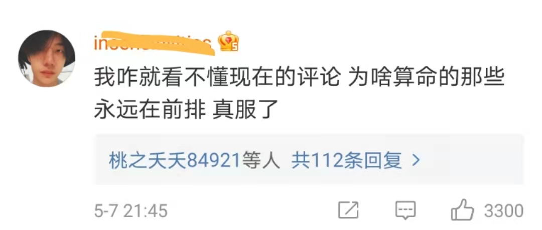 人总是矛盾的。当我打开第一条评论之后,第一眼觉得有点辣眼,然后立刻想:卧槽,不会每条热搜的下面都有这个吧。然后顺着这个想法按次打开热搜,立刻得到了肯定的答案。突然间,花不是花,雾不是雾,小行星掉在了地球上。我的大脑瞬间升起对未来职业的迷茫,以及从未有过的精神撕裂。