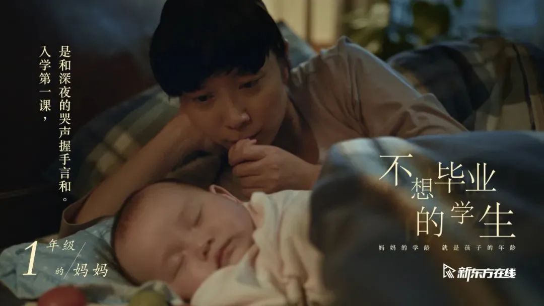 短视频最后,以“妈妈的学龄,就是孩子的年龄”,“爱的课业,永不毕业”,将品牌精神做提升,但完全不去露出任何产品。