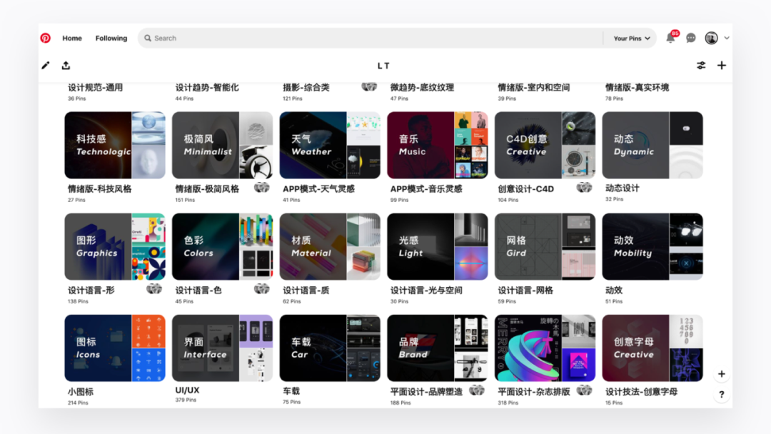 上图是我的Pin,我现在也会每天坚持收集灵感与删除丑的图片。如果你通过这种方式锻炼三个月,审美能力还没提升,你来找我。