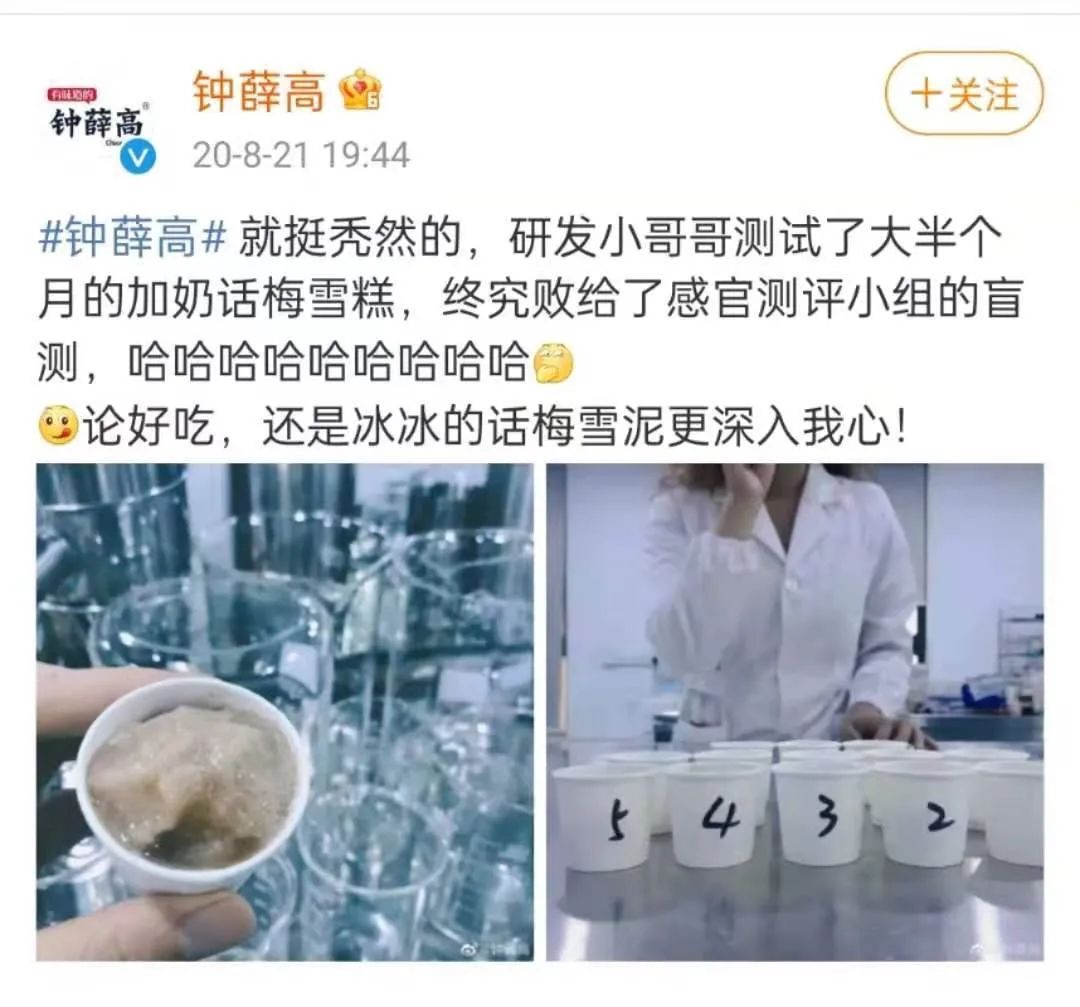 于是研发小哥哥测试了大半个月的加奶话梅雪糕终究败给了感官测评小组的盲测。产品推出后钟薛高还并打出口号“这是一款和你们共创的产品”,一下就拉近了与用户的距离。
