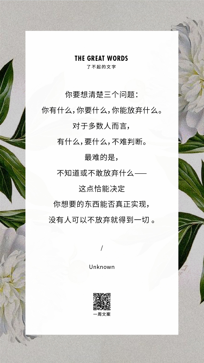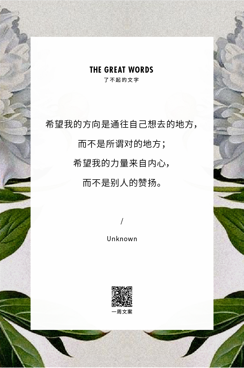「了不起的文字」栏目是一个没有主题的主题集——来自巨著名篇、圣贤金句、传世演说、经典影剧,也来自民间谚语、市井智慧、网友评论、冷门读物……一切有深刻人性洞察的独到见地,帮助启发更多文案创作灵感。