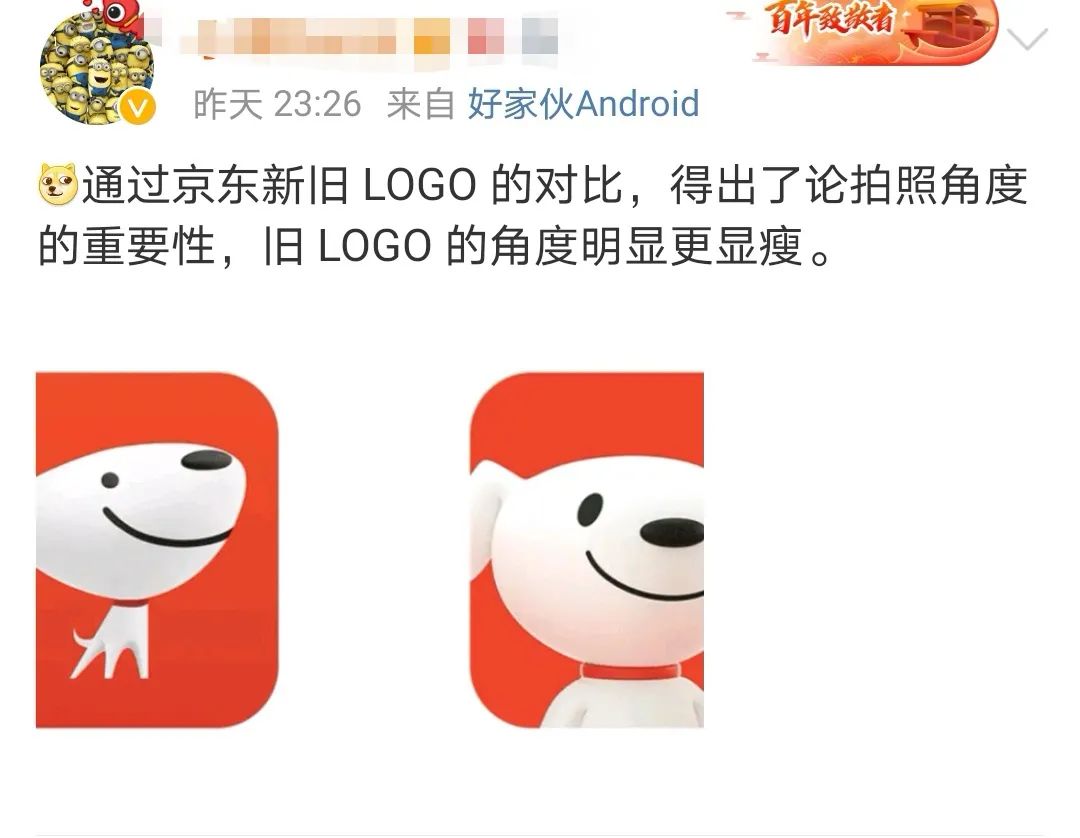 说实话,看到新logo时,我第一反应是:这么多年了,京东狗Joy终于换拍照姿势了,从阿姨旅游全身照变成了网红自拍照,孩子真的成长了。