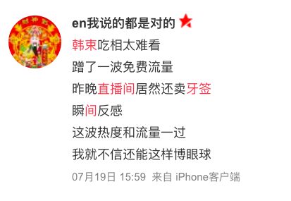 最近这几天,韩束在其他直播间的主播,可能也想要大红包,为了迎合网友,纷纷开始了牙签的造梗: