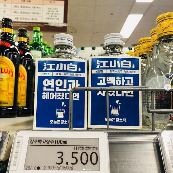 无论是在江南区还是在双门洞,那些想要去便利店选购烧酒的韩国人,会不约而同地被隔壁货架上的江小白吸引住好奇的目光,然后顺手放下了烧酒,拿起一瓶江小白走向了收银台。