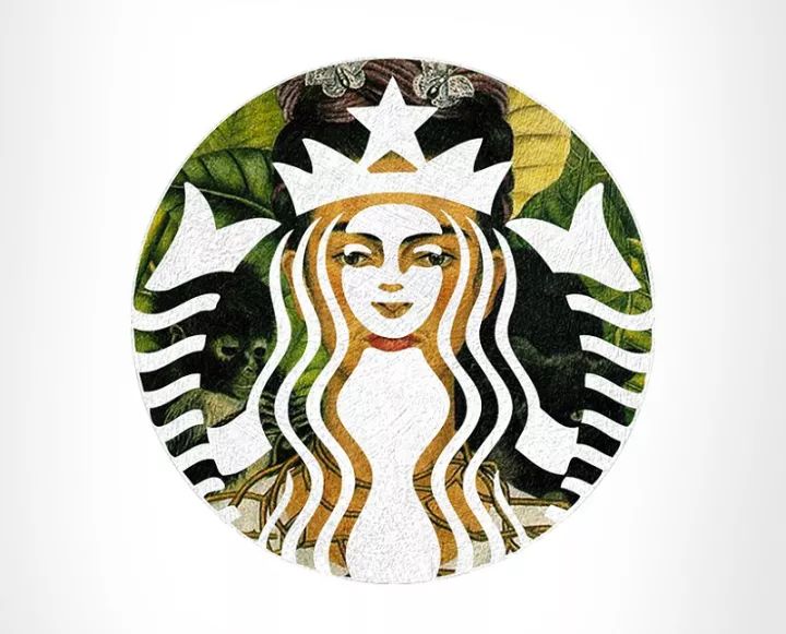“戴着玫瑰项链的自画像和一只蜂鸟” + 星巴克标志