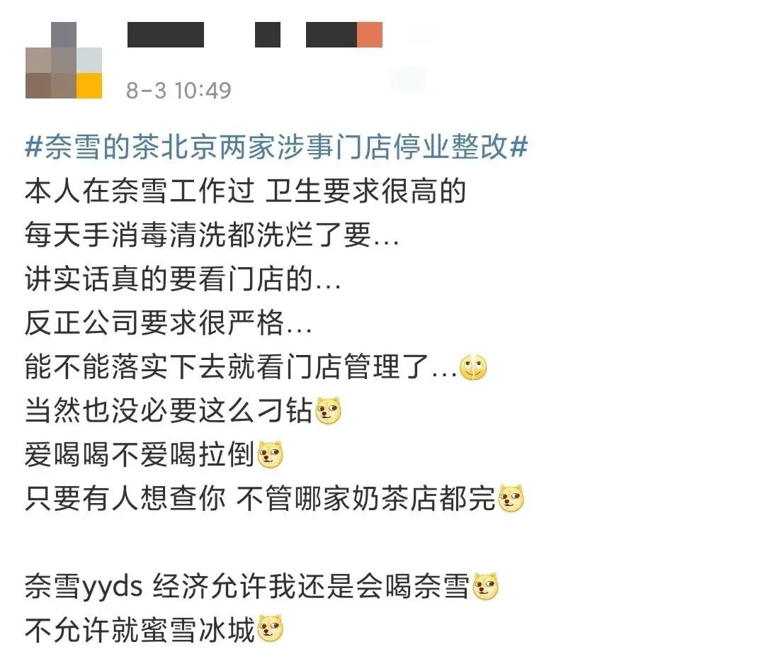 自然也有继续支持派,奈雪的茶yyds,自称在奈雪工作过,证明奈雪的卫生要求是严格的,能不能落实看门店管理:
