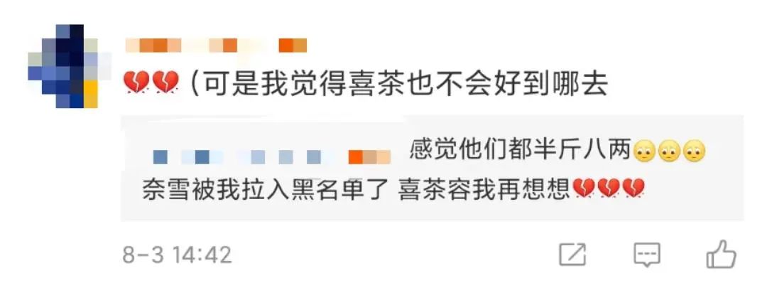 这个新闻上了热搜后,消费者们的反应和爱豆塌房时相似,有各种不同的态度。