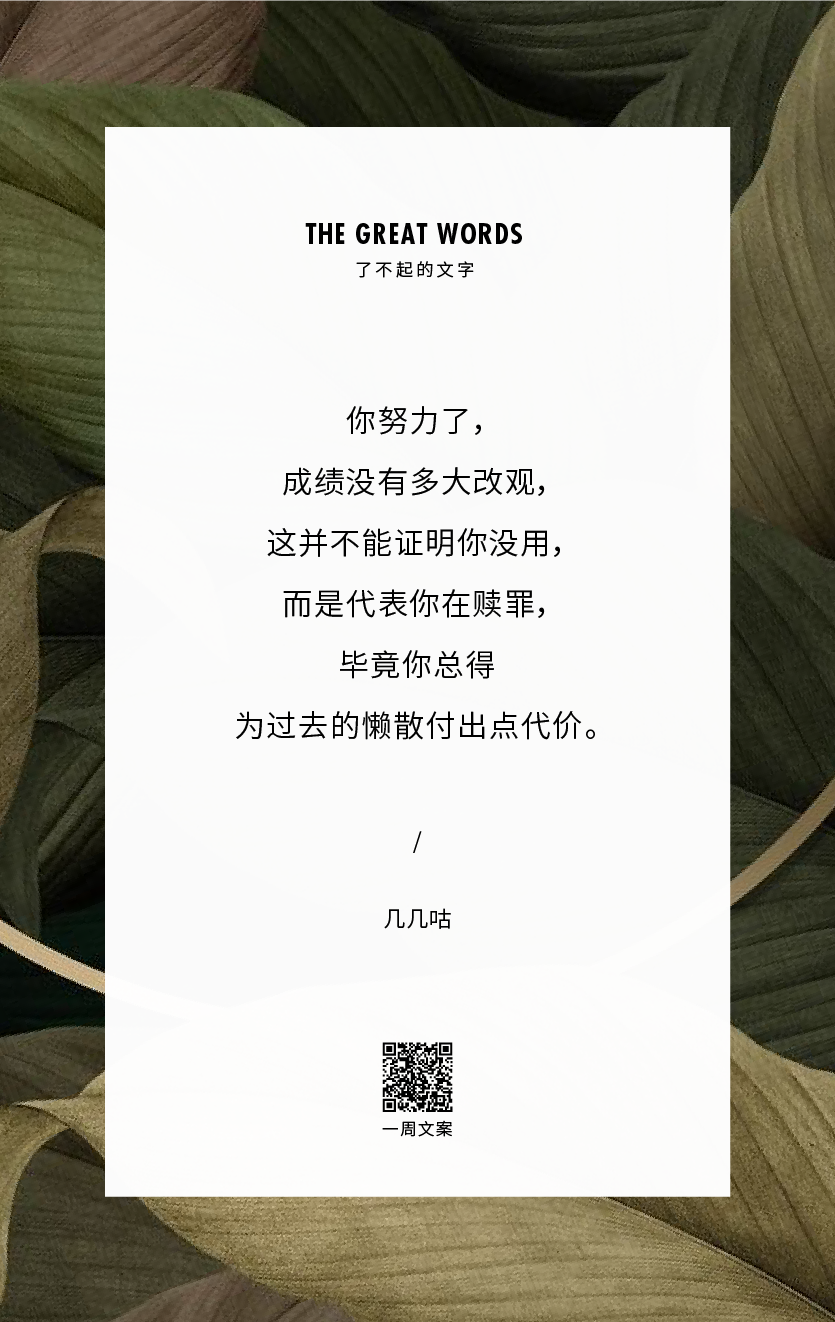 「了不起的文字」栏目是一个没有主题的主题集——来自巨著名篇、圣贤金句、传世演说、经典影剧,也来自民间谚语、市井智慧、网友评论、冷门读物……一切有深刻人性洞察的独到见地,帮助启发更多文案创作灵感。