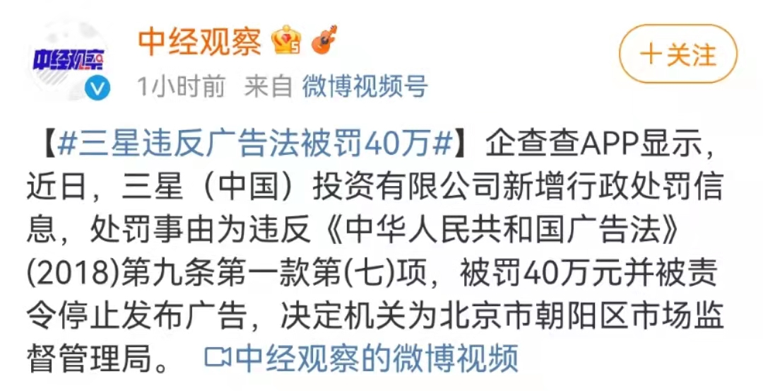 除了索尼被罚之外,三星和饭来也因为违反广告法而受到处罚: