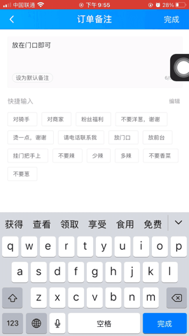 饿了么:在饿了么的订单备注中,最近输入过的备注历史记录都会显示在下方,省去了用户每次下单都要重新码字的步骤。