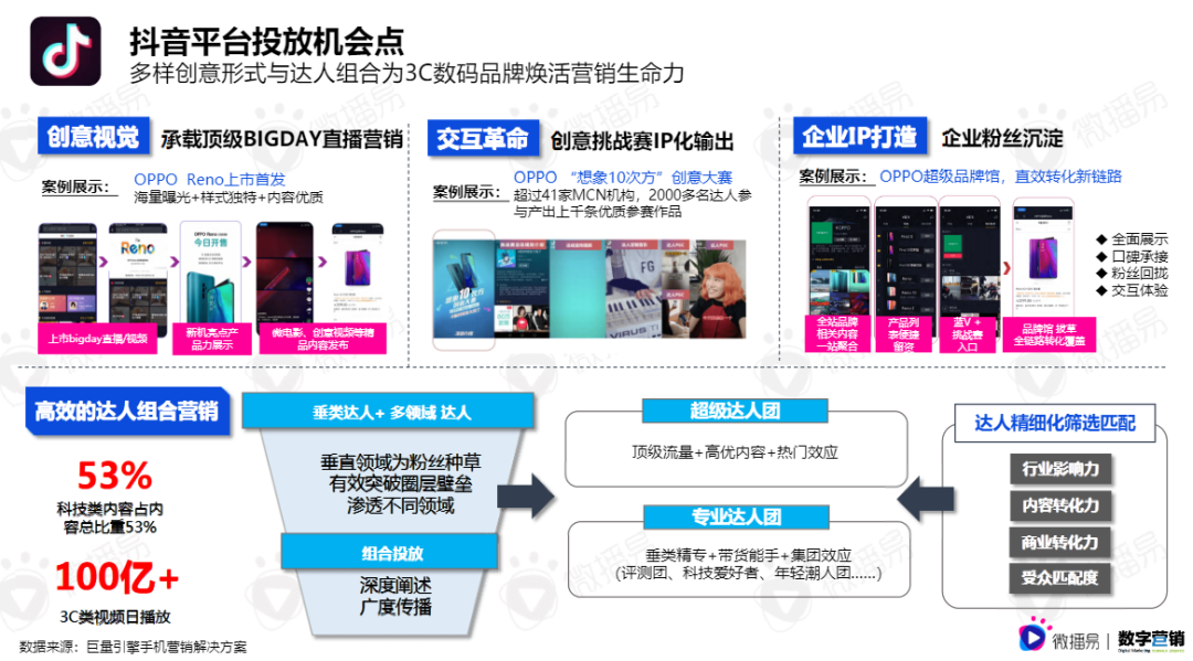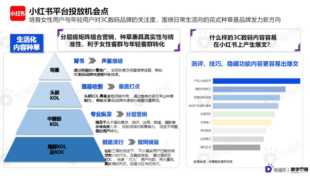 平台机会点:影响力和渗透式种草,利于快速打造品牌及产品认知,是3C数码手机品牌宣传造势核心平台;
