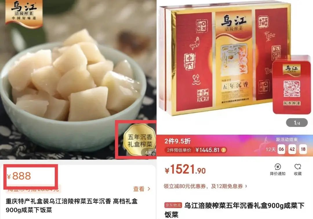 最近,涪陵榨菜旗下的乌江榨菜推出一款榨菜礼盒,因官方售价高达888元,并被其他平台抬价到了1521.9元,而引发网友们讨论,登上了热搜。