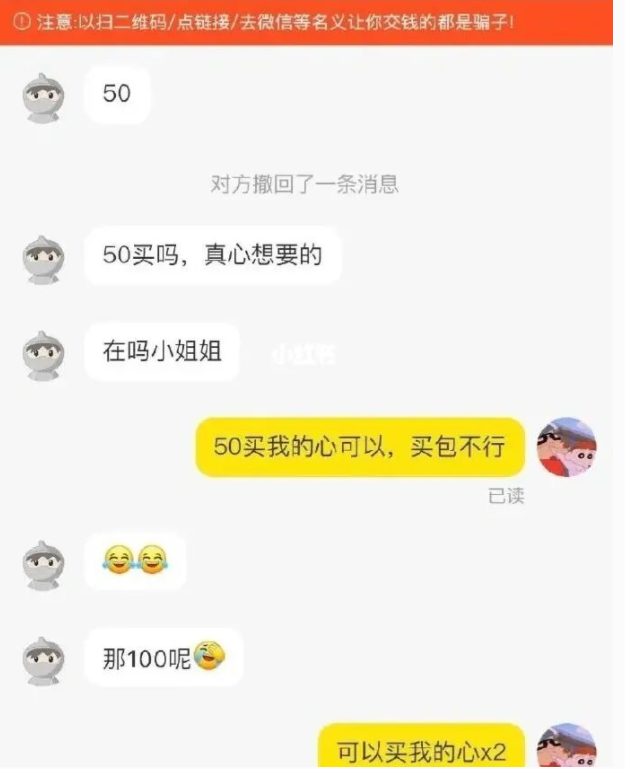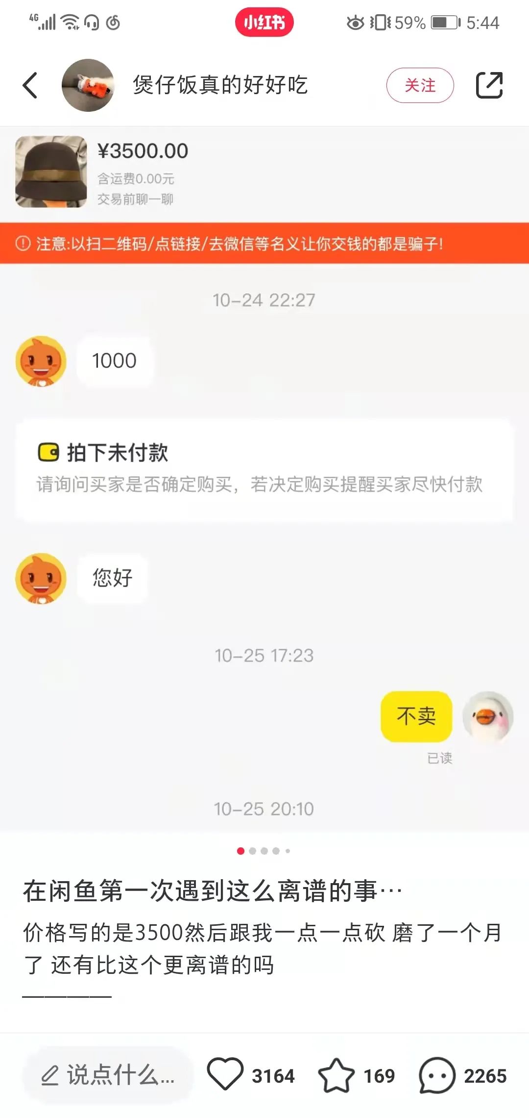 卖家挂出一件标价3500的货,对方上来砍了一大半,给1000
