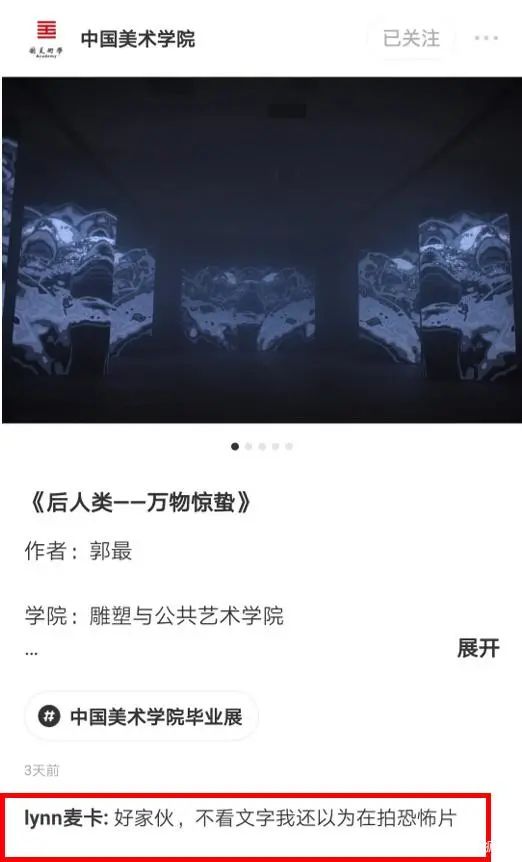 反正圈佬看完那些咸鱼里善于吐槽的“牛鬼蛇神”,觉得中国美院真是挺敢的。