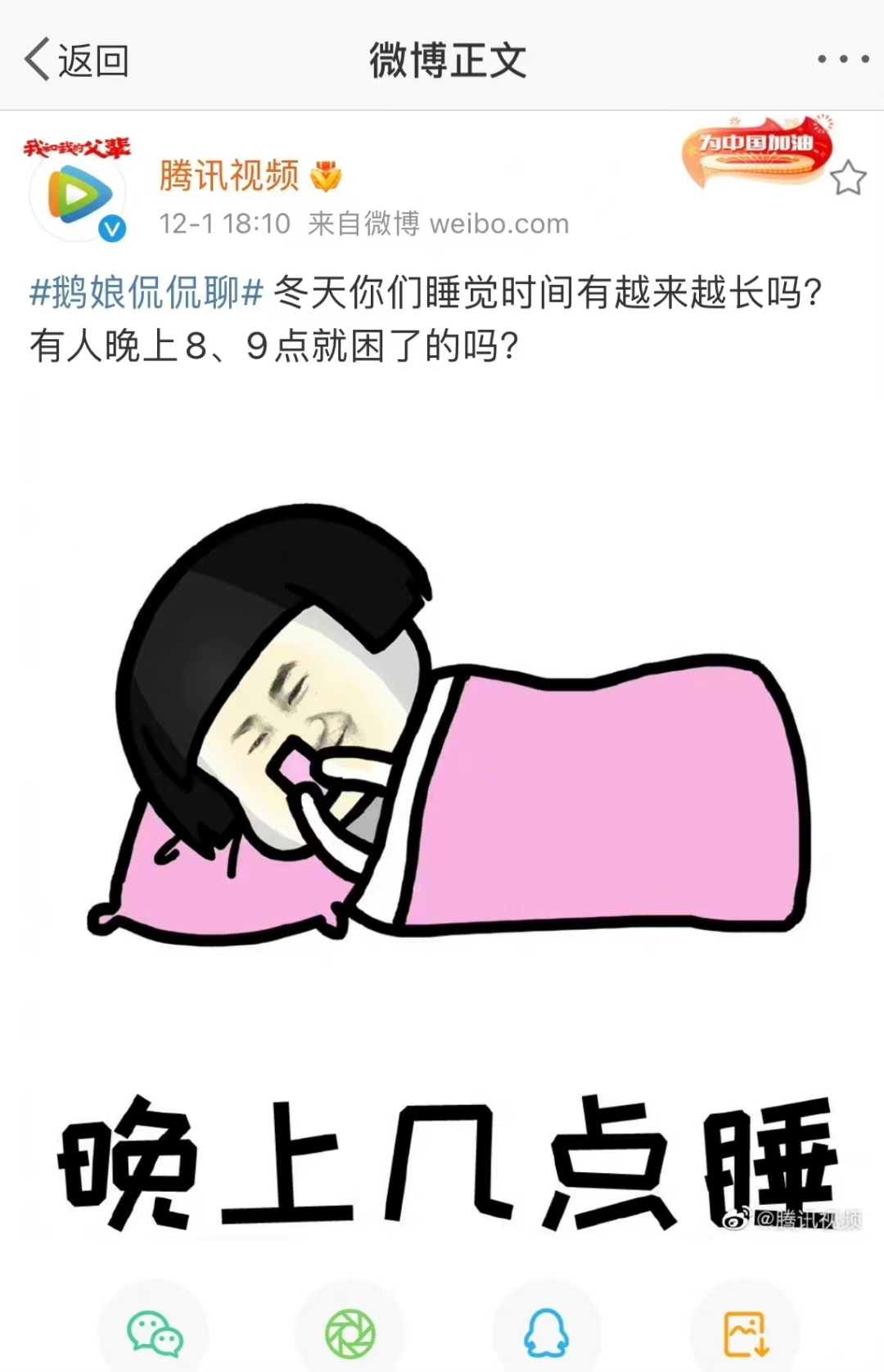 腾讯视频早前就发微博内涵:有人晚上8、9点就困了的吗?