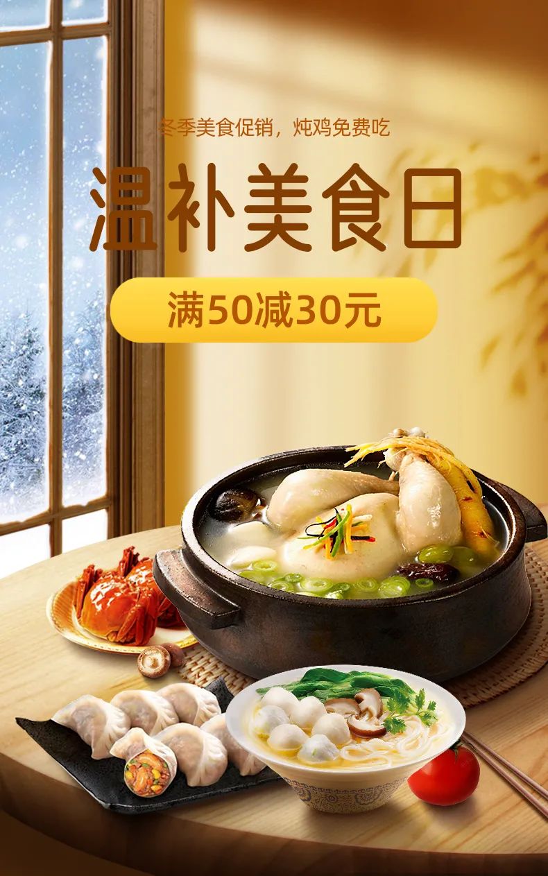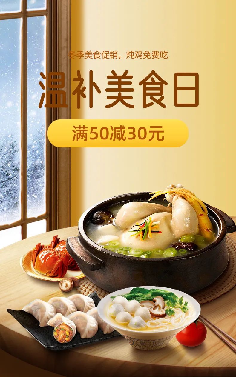 一般冬天喝鸡汤比较多,窗外的风景,咱直接去花瓣找张雪景图贴上。这样一来色彩上,也有了冷暖的对比。