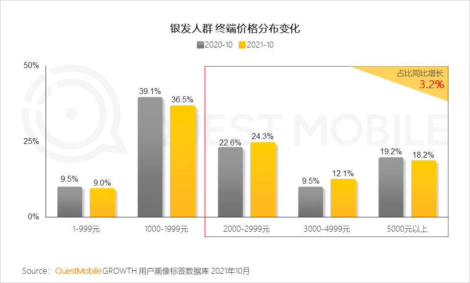 6、银发人群网络接触程度不断加深的同时,使用手机终端的价格档次也在不断提升,由此也再次推动他们对线上服务的粘性