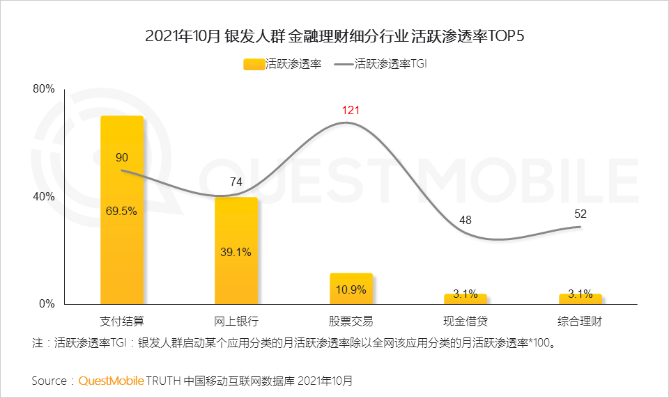 3、近七成银发人群通过线上进行支付,他们稳固的财力同样体现在对股票交易的突出需求
