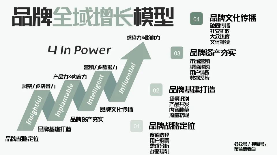 全域增长是品牌的必经之路,本文将通过4个阶段、16个模块进行品牌全域增长模型的解析,整个增长过程也伴随着对企业不同能力的考验,我总结为4-In-Power。