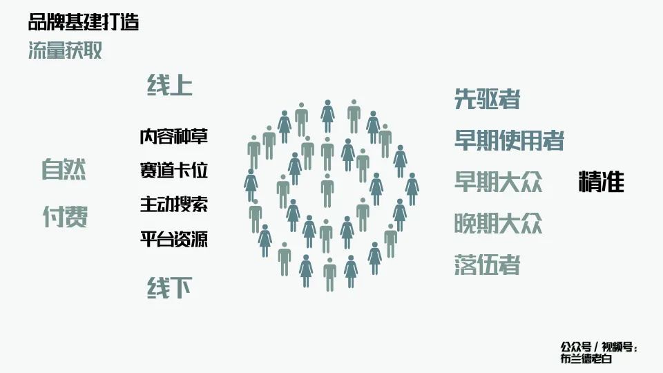 付费流量指品牌通过付费广告获取的用户,在线下场景中,包含地推、快闪、展会等形式。在线上场景中包含效果广告、代理分销、直播带货、平台活动等多种形式。既然流量已经付费获取,那最重要的就是一定要确保流量的精准度,无论线上还是线下,如果实际触达用户与目标用户不符,所有付费流量等于开闸泄洪,什么都没有留下。另外即使是同种类型的付费流量,用户对于全新产品的尝试意愿远低于有记忆度的产品,所以好的内容种草不仅可以做用户教育,还可以帮品牌降低获客成本、提高转化率。另外针对平台发起的多品牌营销活动,积极抱紧平台大腿的同时,一定要通过产品和内容的方式进行品牌差异化传播,否则只会成为其他强势品牌的嫁衣。
