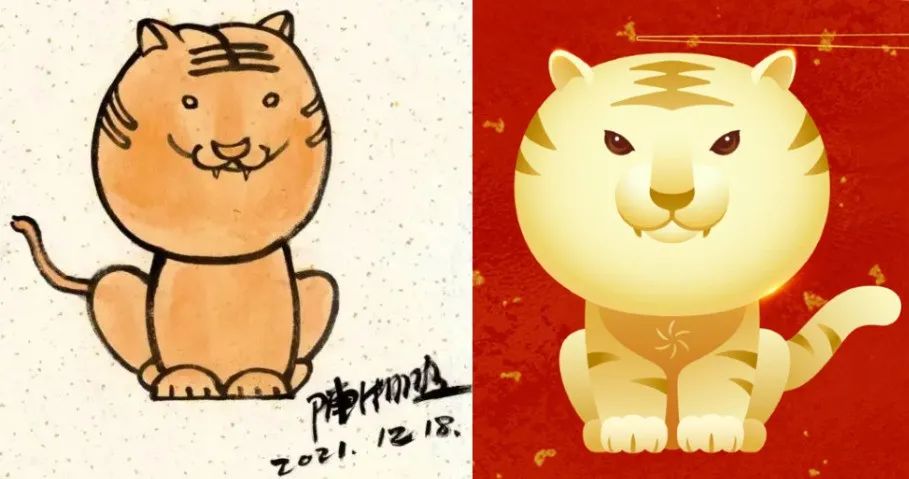 不过,从初稿到最终定稿,这只小老虎是越变越“正经”了,多多少少还是保留了春晚内味儿。