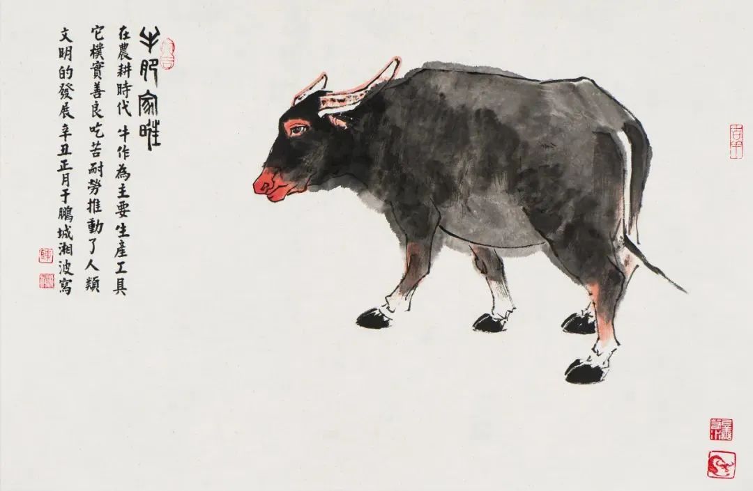 以国画的形式 ,通过自己的观察去描绘生动的动物形态。其中,他笔下的老虎也有这种生猛的形象。