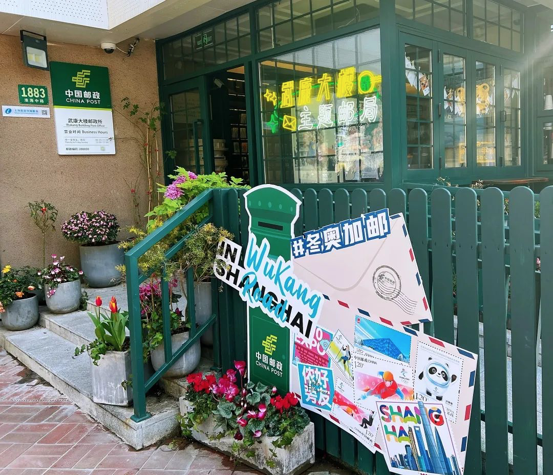 上海 武康大楼主题邮局, 年轻人可在老上海氛围中边喝咖啡边寄件,设有“ 写一封信寄给未来的自己”功能, 且经常有社交活动,如情人节“爱的表白”