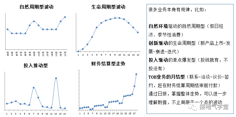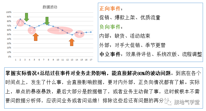 偷懒的结果,就是看数据的时候只会纠结一点的高低,忽视趋势,忽视规律,忽视业务影响。对指标的基本走势、合理范围缺少判断能力。一惊一乍,涨个1%也要分析,跌个1%还要分析。对着每日数据纠结,反而忽视了周趋势变化,容易忽视长期问题/深层问题。
