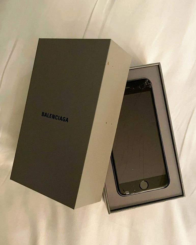 巴黎世家2022年秋冬秀用一台碎屏iphone 6s做邀请函。