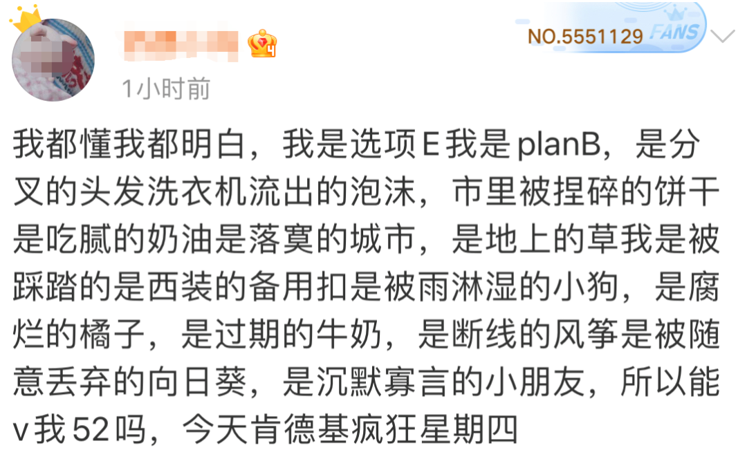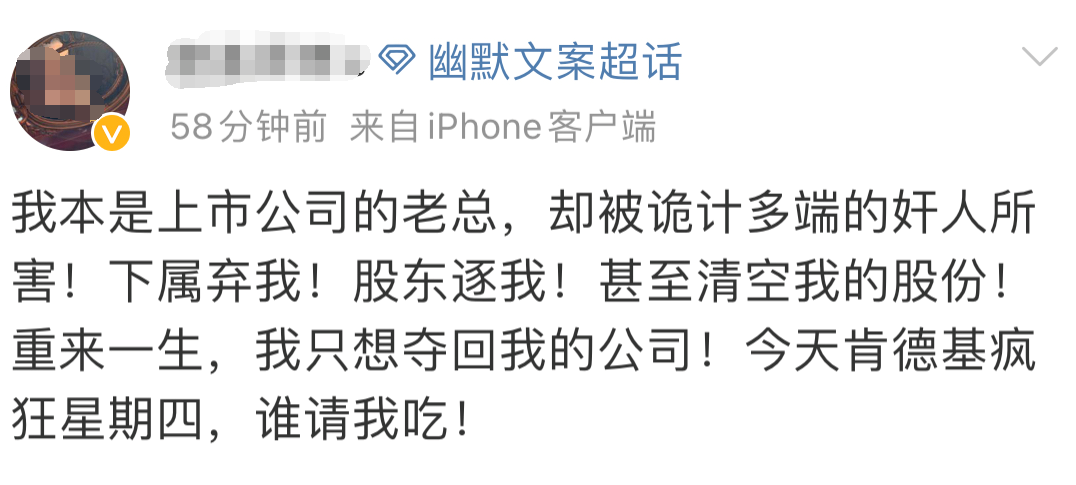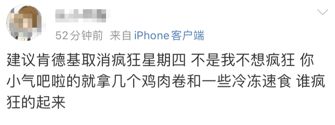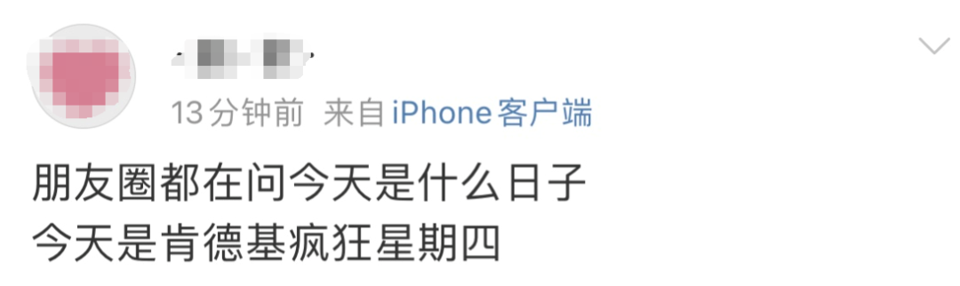 有着超高关注的「肯德基疯狂星期四」,有哪些值得人讨论/传播的文案呢?兵法先生收集了热度较高风格有差异的文案,一起来看。