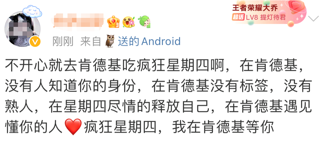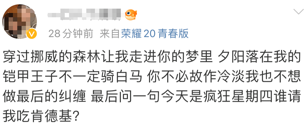 此活动的发起,再次激发了用户的创作热情,产生了很多关于「肯德基疯狂星期四」的文案,引发了一大波网友的关注。