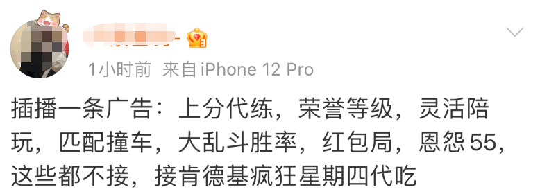 可以说「肯德基疯狂星期四」成功将营销内容做成段子,通过讲故事的方式赢得了用户的关注,「肯德基疯狂星期四」的内容创意佳,可读性强。同时那些强社交、强话题的内容又能够极大刺激用户的创作热情,增加用户与品牌之间的粘度。