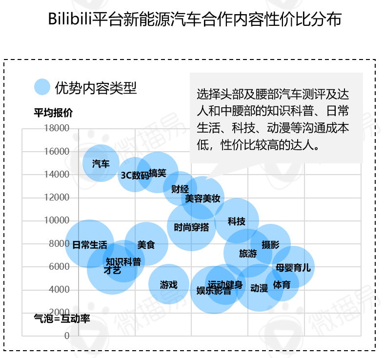 Bilibili 汽车内容合作领域丰富,其中头部及腰部达人的新能源汽车测评及中腰部的知识科普、日常生活、科技、动漫等内容与用户的沟通力更强,性价比更高,适合品牌合作。